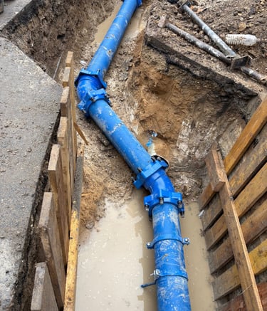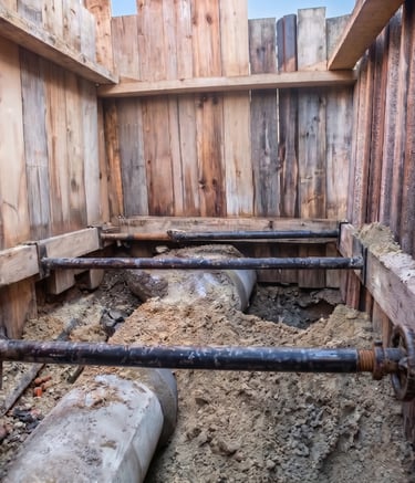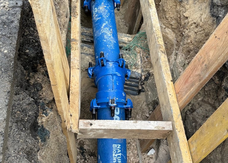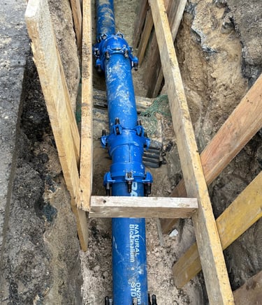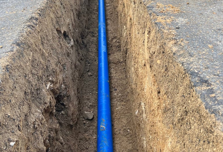 Raccordements techniques aux réseaux d'eau et d'assainissement. Ouverture de tranchées, pose de canalisations et mise en conformité de vos évacuations extérieures.